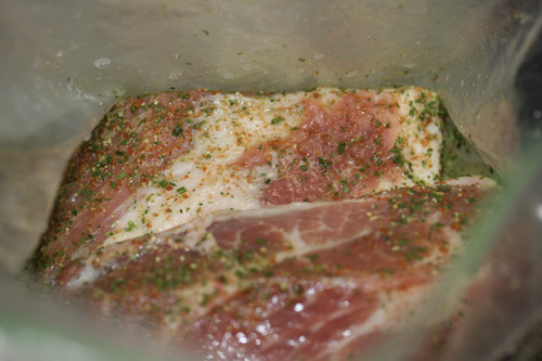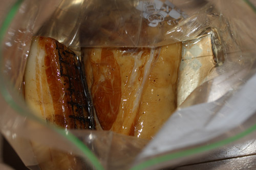 ・ジップロックにブロック肉を入れ其の中にキャノーラ油を適量入れます。
