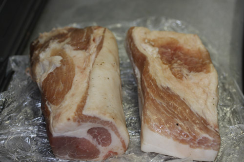 ベーコンといえば豚バラブロックですが、肩ロースもおススメ。よくどちらが美味しいですかと聞かれますが、完全好みです。自分は脂身が好きなので豚バラ肉ですが、女性は肩ロース肉のほうがいいという人が多いです。