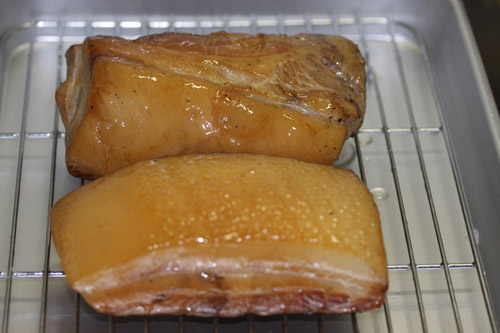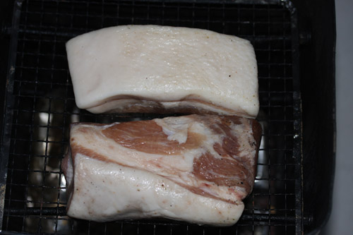 表面の油を軽く拭き取り、冷蔵庫で2日間風乾燥。1日寝かすだけでも充分ですが2日寝かすことをおススメ。