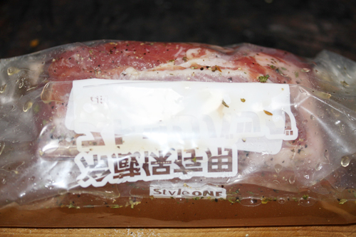 ここでジップロックへ振り塩した牛肉を入れ、最初に作っておいたソミュール液を入れる。さらにここに『ラフロイグ-クオーターカスク』を50cc投入。