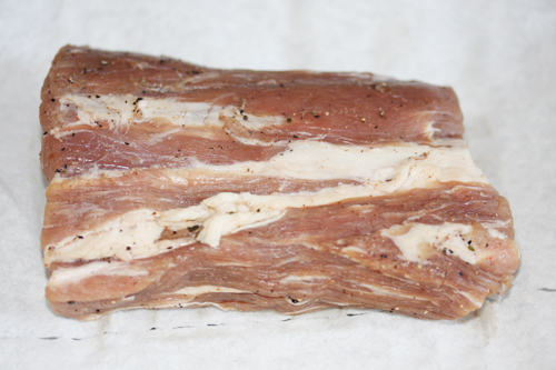 以前ベーコン作りでも成功しているこのレシピは、牛肉だとどうなるのだろうか!?楽しみです。