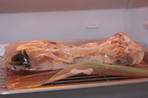 ▼冷蔵庫で1日寝かせた後→水洗いして→塩抜き冷蔵庫で4時間