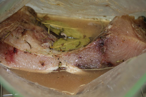 ▼ジップロックに塩など入れてから鰤カマ投入しフリフリシェイク!