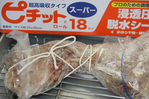 ・塩抜きが終わったらキッチンペーパーで水気を拭き取りピチットシートに24時間包みます。
