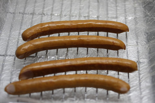 ソーセージを取出しキッチンペーパーで表面の水気をしっかり拭く。