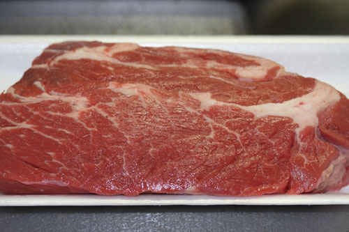 牛肩ロース肉100g/98円と安い肉をゲット。