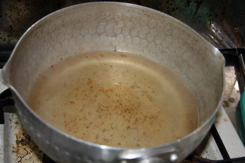 上記材料を煮立てて冷める迄待ちます。