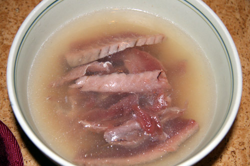 1.ソミュール液から取出した鰹を水で軽く洗います。