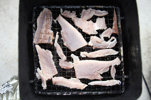 今回はチリペッパーを多めにしてスパイシー&スモーキーなジャーキーに仕上げる予定。