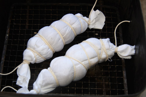 肉には、サラシを巻いてタコ糸で縛っていますが、このサイズの肉では型崩れもしないので不要ではありますが…雰囲気も大事ですw