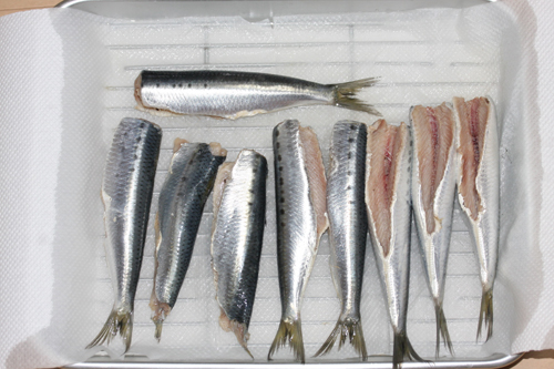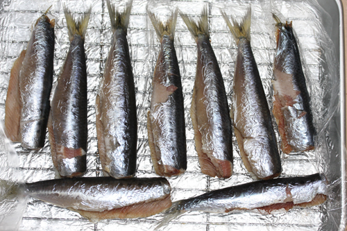 いわしの大きさは人差し指くらいの小振りな物を基本使います。ただ自分は大きめが好きなため、頭を切り落とす前で150mm位のいわしを使います。
