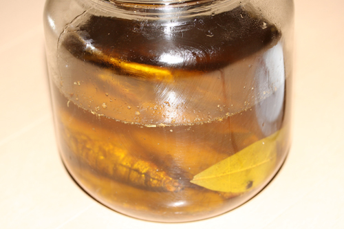 燻製した鰯をオイルで煮ます。