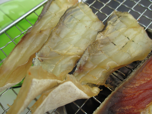 鱈は脂身が少ない分カチカチの干物になる。こんな燻製に合う食材はない。ちなみに食べ方はそのまま食べてもいいが、炙りながらプロセスチーズと食べると絶品である。