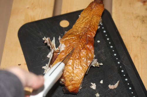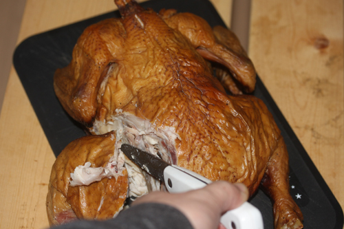 ▼スモークチキンの切り分け方
