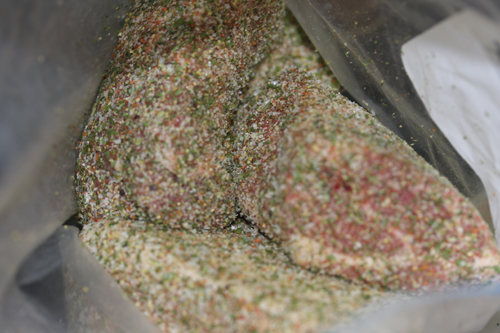 ・ジップロックに塩、好みのハーブとスパイスを適当に入れる。