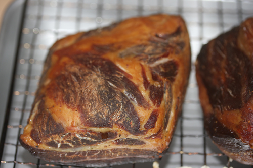 ただそんな時は、燻製後に「風乾燥をしっかり」して、「脱水」をすれば大丈夫。写真でも分かるように、いい色に仕上がっています。