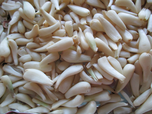 ラッキョウは生命力が強く一日放置しただけで芽が出る。天日干しする前に塩を振りかけるのがべスト。塩を振りかければ芽はでない。