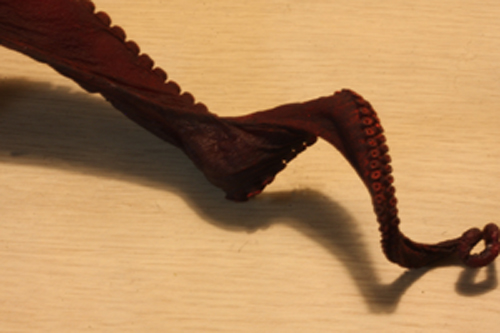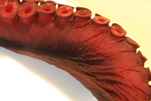 赤い酢だこの燻製。年末になるとスーパー等でも、酢だこが売られます。単純にこれを燻製するだけです。
