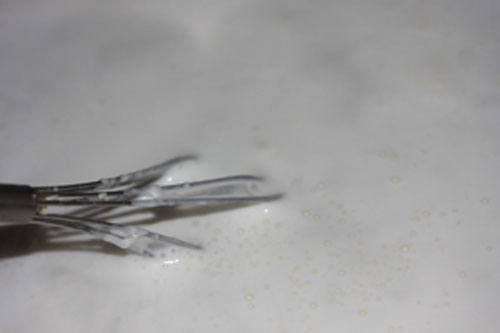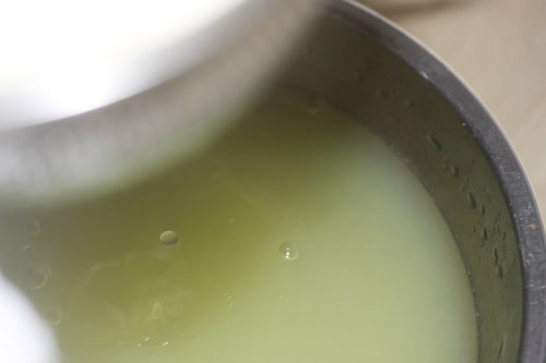クエン酸を入れると5分くらいで、モロモロしてきます。後は火を消して20分位放置。