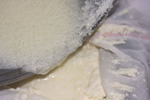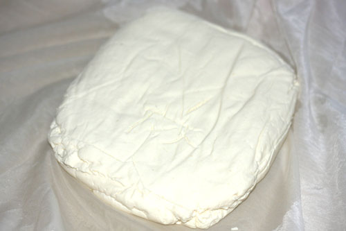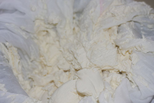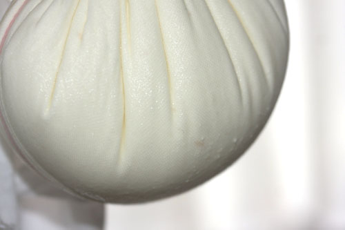 布で濾して5分位放置してホエーを排出させます。