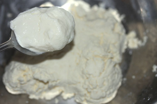 ・このタイミングでヨーグルトを入れれば、確実に乳酸菌が生きたチーズになる。