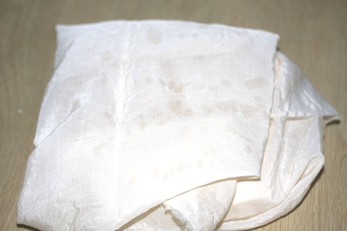 ・布を広げると、かなり脱水が出来ています。
