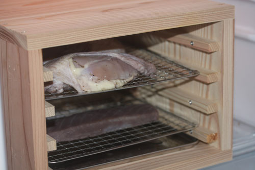 燻製後冷蔵庫で1ヶ月程熟成をさせます。