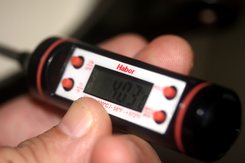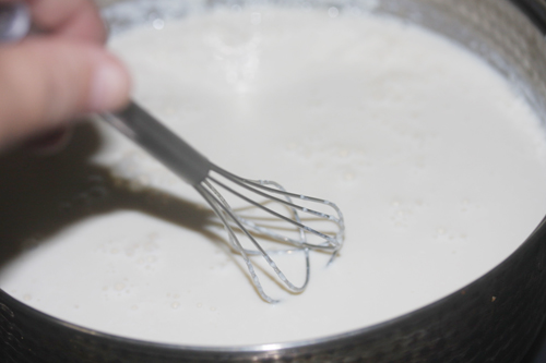 豆乳を40℃まで温めます