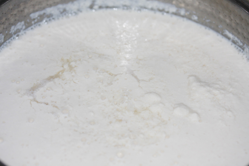 大豆ホエーが大量に出ます。これを筋トレ後に飲めば筋力アップするのだろうか!?ホエーをある程度出したら、カードをボウルに移します。