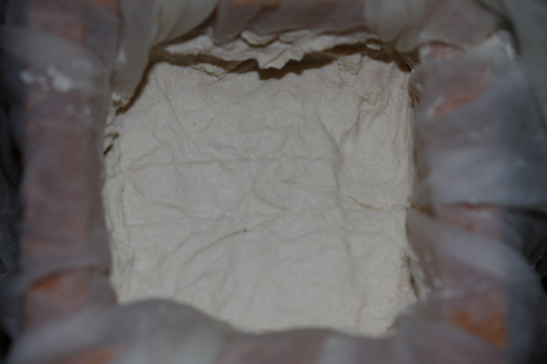 型に流し込んで、圧をかけて冷蔵庫で1日