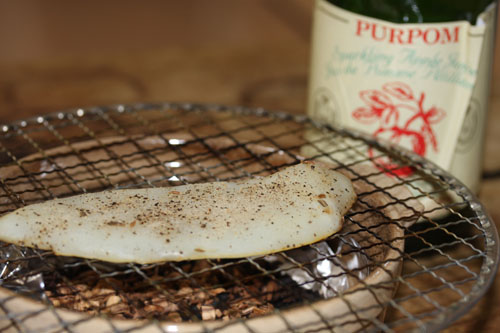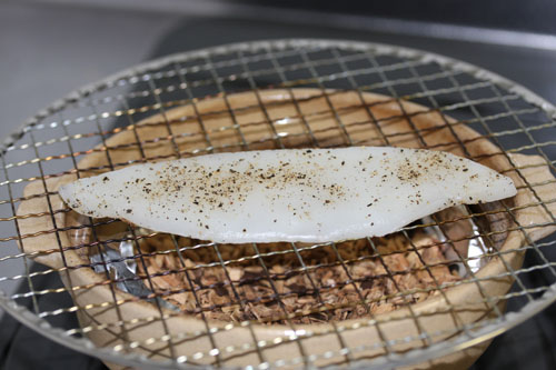 イカを網の上に乗せて準備完了!