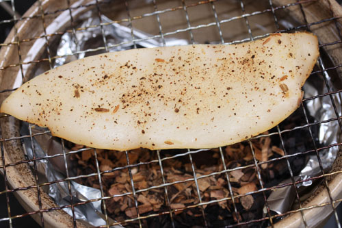 1.煙が充分出たら紋甲イカをセット。